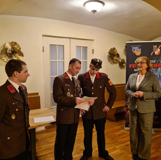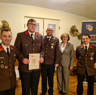 Als letzter formeller Tagesordnungspunkt standen die Beförderungen auf dem Programm: Die Feuerwehrjugendmitglieder Matthias Datzberger und Florina Erber erhielten den Dienstgrad für die erste Erprobung und das Abzeichen Feuerwehrtechnik, Michael Grissenberger den Dienstgrad für die zweite Erprobung. Unter den aktiven Mitgliedern wurden Rudolf Klamert zum Löschmeister, Patrick Kreusel zum Oberlöschmeister, Thomas Wagenhofer zum Hauptlöschmeister, Stefan Falthansl zum Oberbrandmeister und Thomas Zehethofer zum Hauptbrandmeister befördert.